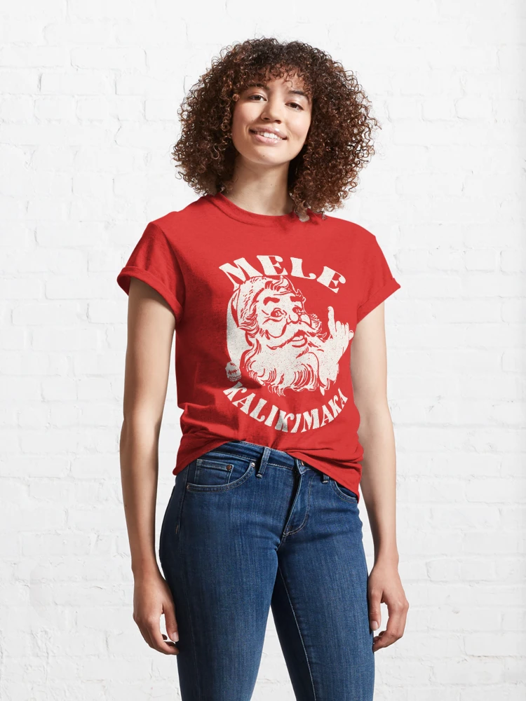 Celebrate the holiday season with a touch of Hawaiian flair in this Retro Christmas Mele Kalikimaka Santa Claus Shaka Hawaii Tee. Featuring a vintage-inspired design, this classic t-shirt showcases Santa Claus throwing up the iconic “shaka” hand sign—symbolizing the laid-back, friendly vibes of Hawaii. The phrase “Mele Kalikimaka”—Hawaiian for Merry Christmas—adds a festive and tropical twist to your holiday wardrobe.